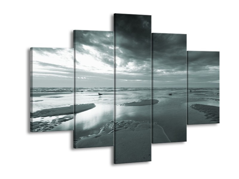 Canvas Schilderij Zee | Grijs, Groen | 150x105cm 5Luik