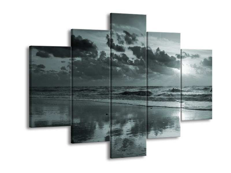 Canvas Schilderij Zee | Grijs, Groen | 150x105cm 5Luik