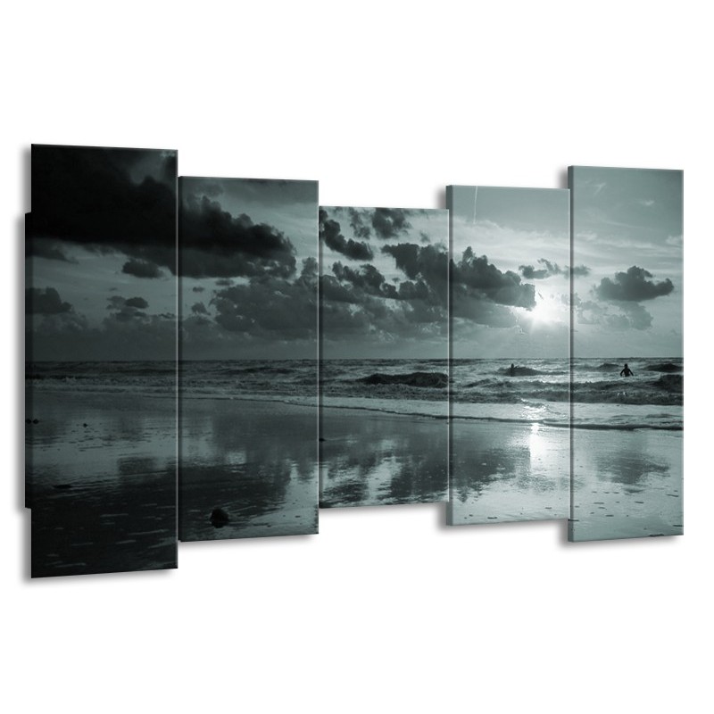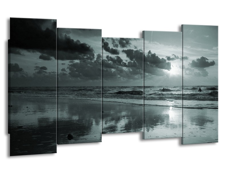 Canvas Schilderij Zee | Grijs, Groen | 150x80cm 5Luik