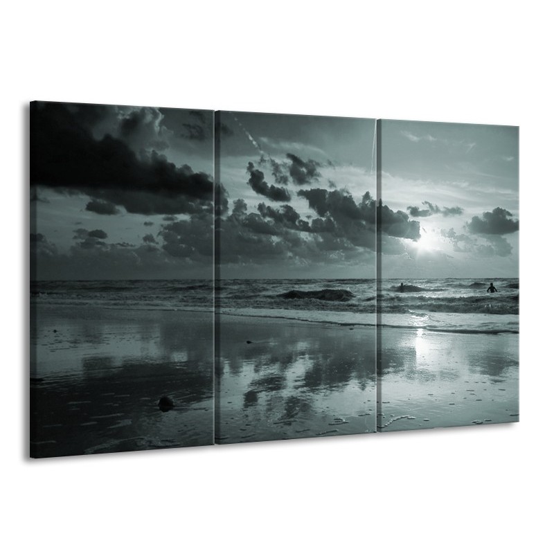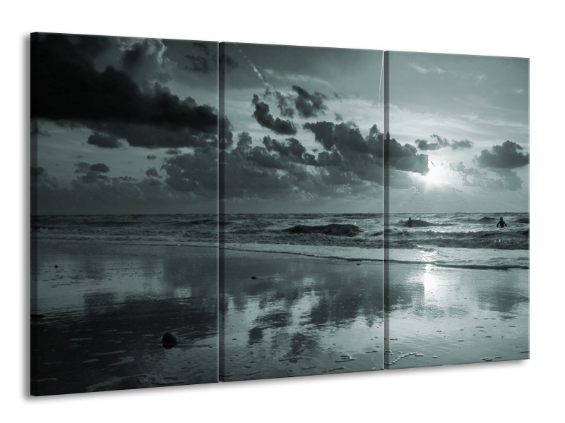 Canvas Schilderij Zee | Grijs, Groen | 165x100cm 3Luik