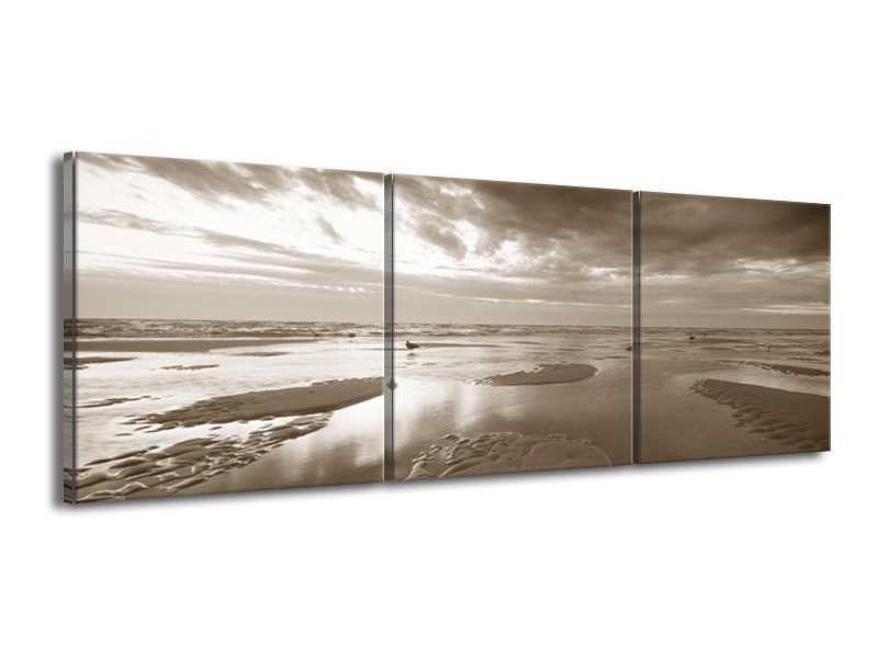Canvas Schilderij Zee | Sepia | 150x50cm 3Luik