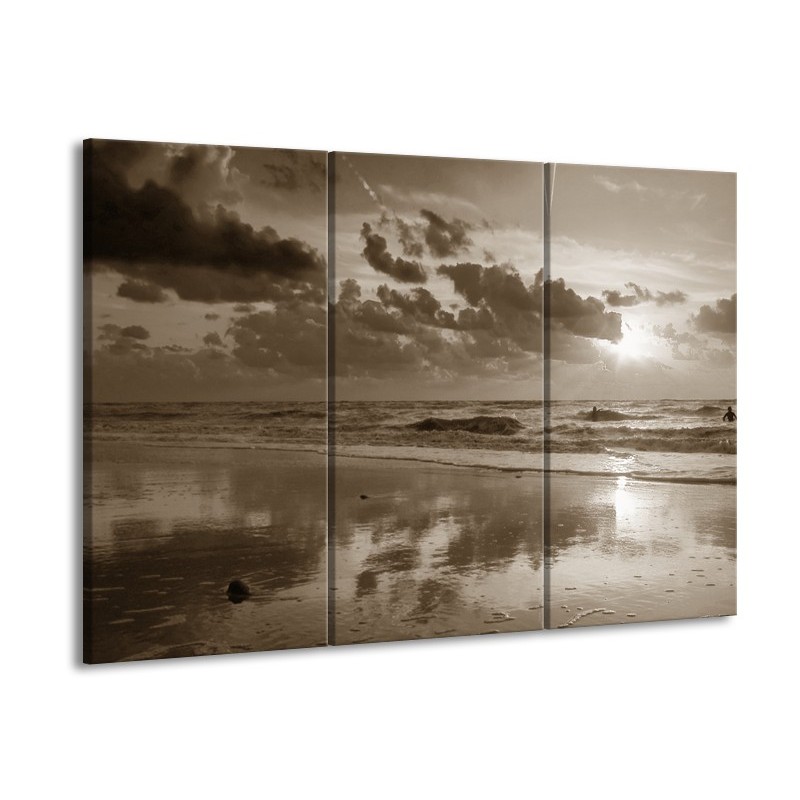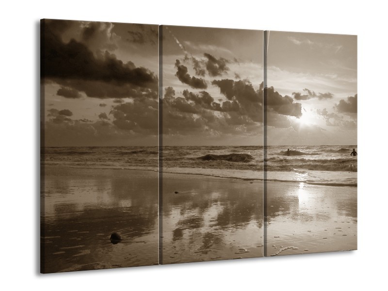 Canvas Schilderij Zee | Sepia | 60x90cm 3Luik