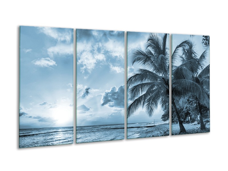 Canvas Schilderij Zee, Strand | Blauw, Grijs | 160x80cm 4Luik