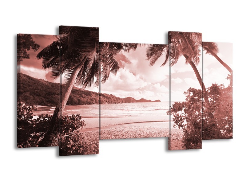 Canvas Schilderij Zee, Strand | Bruin, Rood | 120x65cm 5Luik