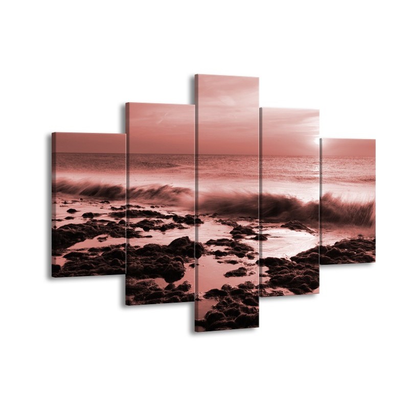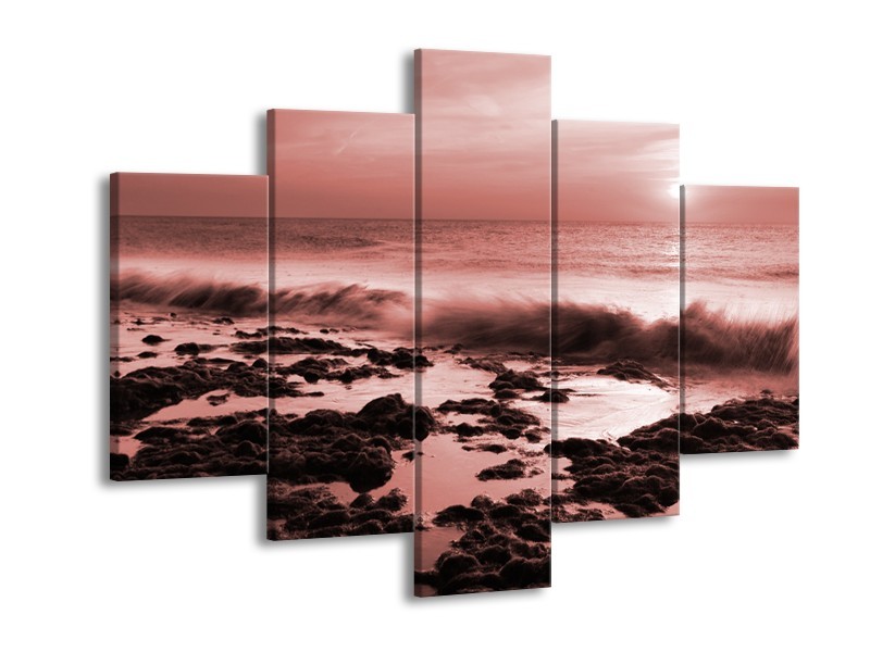 Canvas Schilderij Zee, Strand | Bruin, Rood | 150x105cm 5Luik