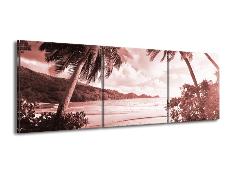 Canvas Schilderij Zee, Strand | Bruin, Rood | 150x50cm 3Luik
