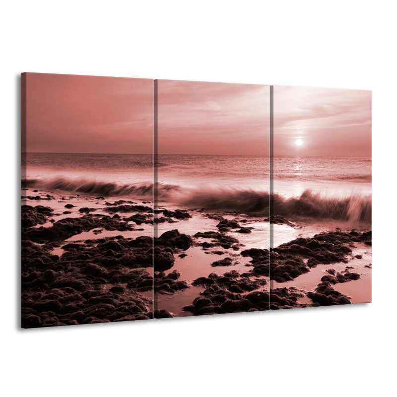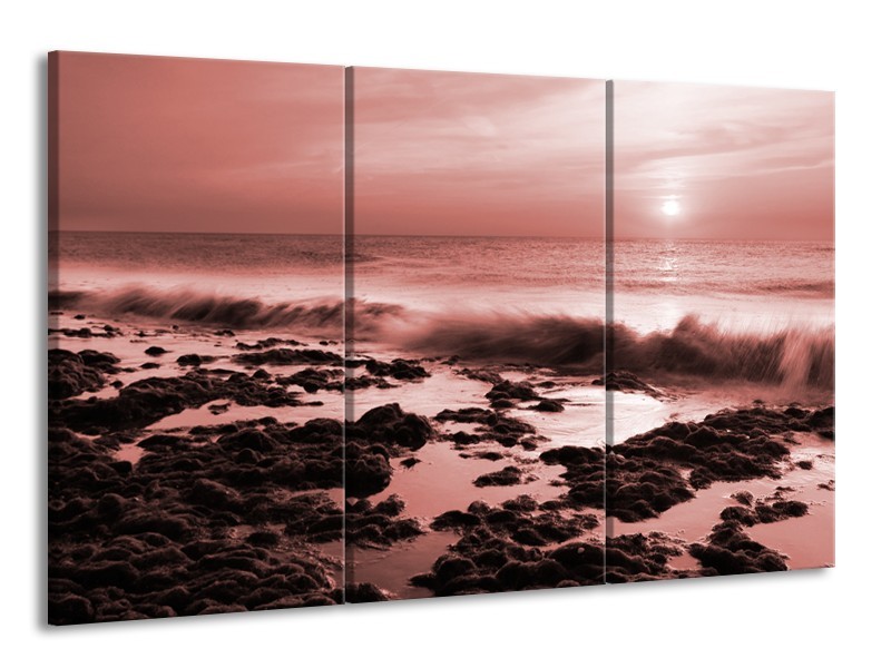 Canvas Schilderij Zee, Strand | Bruin, Rood | 165x100cm 3Luik