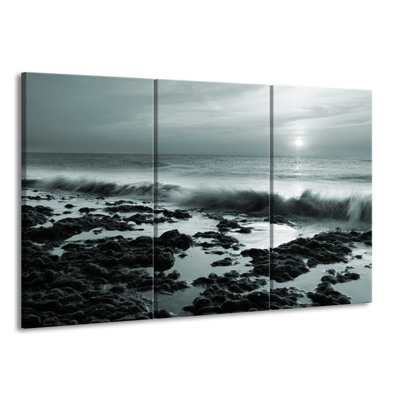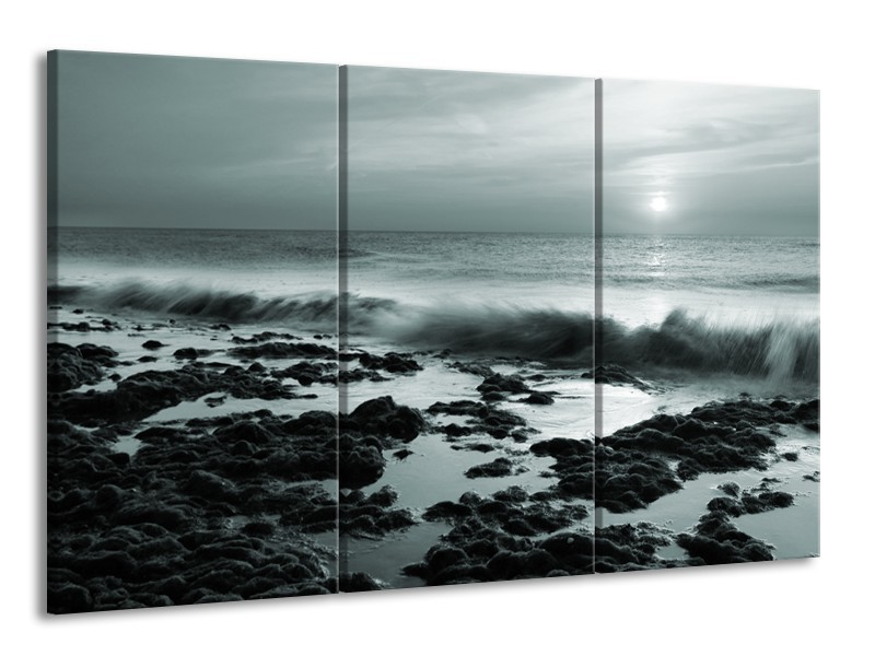 Canvas Schilderij Zee, Strand | Grijs, Groen | 165x100cm 3Luik