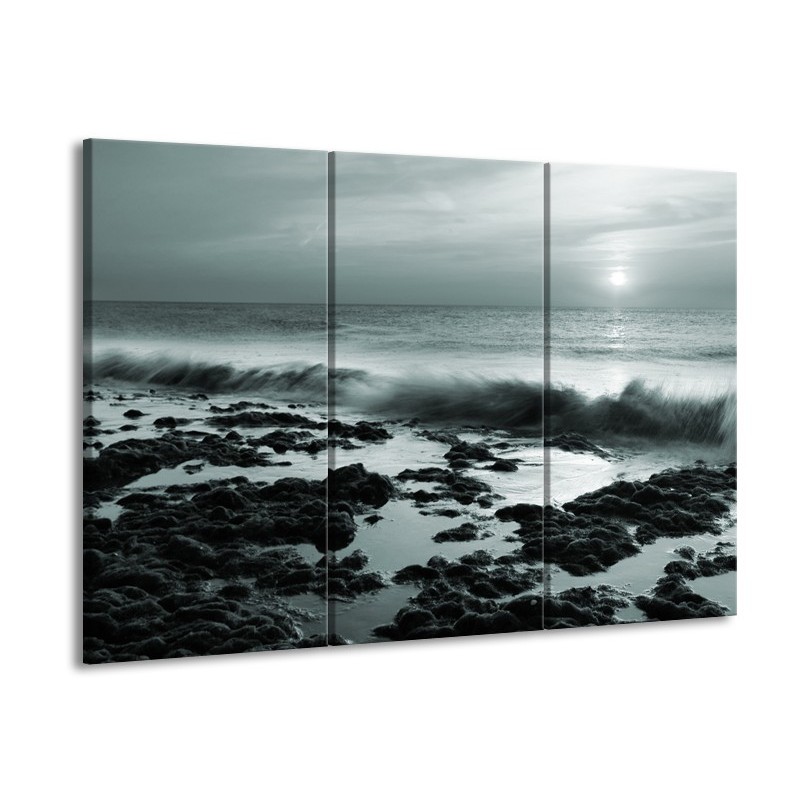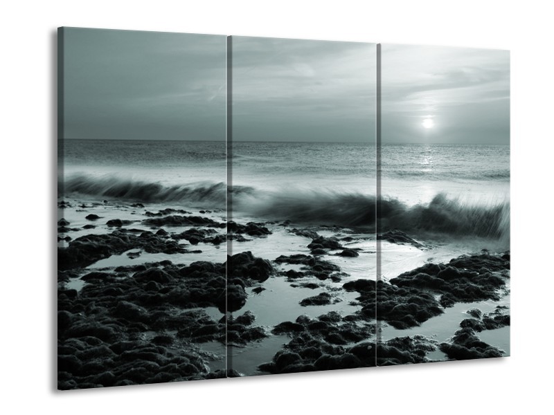 Canvas Schilderij Zee, Strand | Grijs, Groen | 60x90cm 3Luik