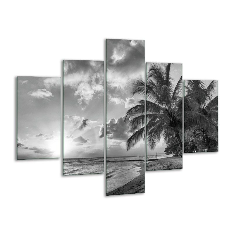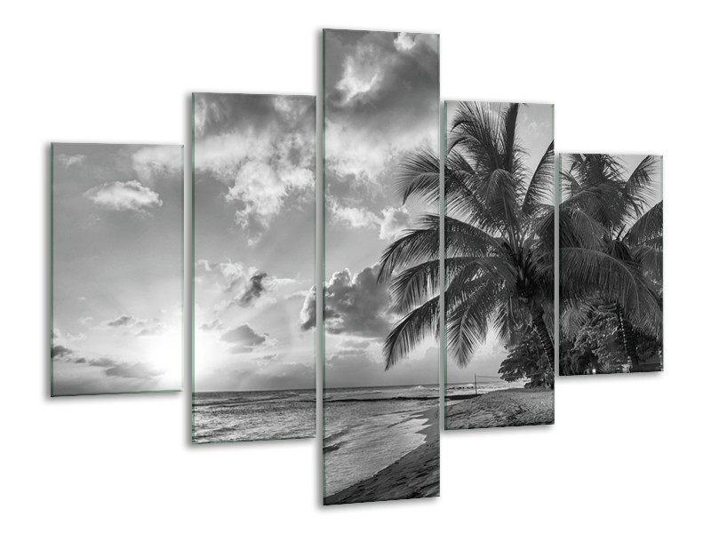 Canvas Schilderij Zee, Strand | Grijs, Zwart | 100x70cm 5Luik