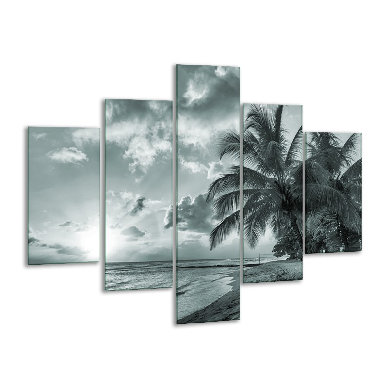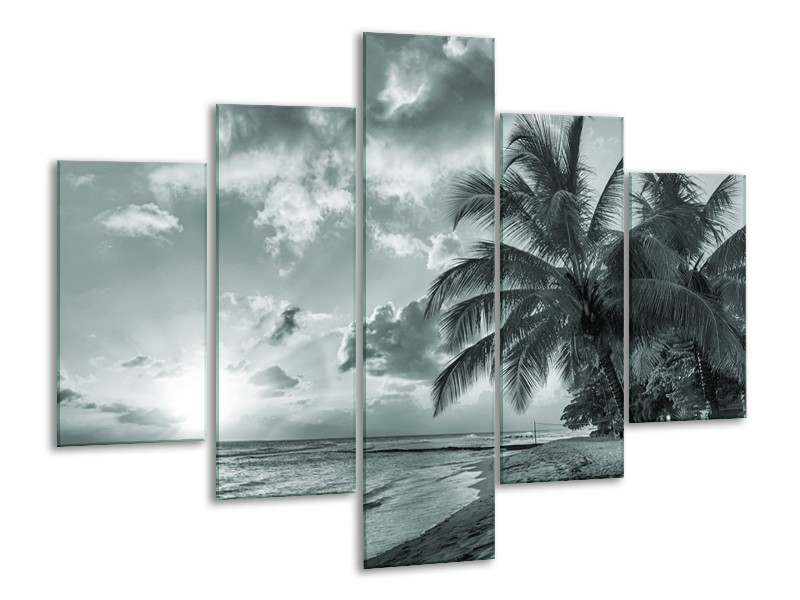 Canvas Schilderij Zee, Strand | Grijs, Zwart, Groen | 100x70cm 5Luik