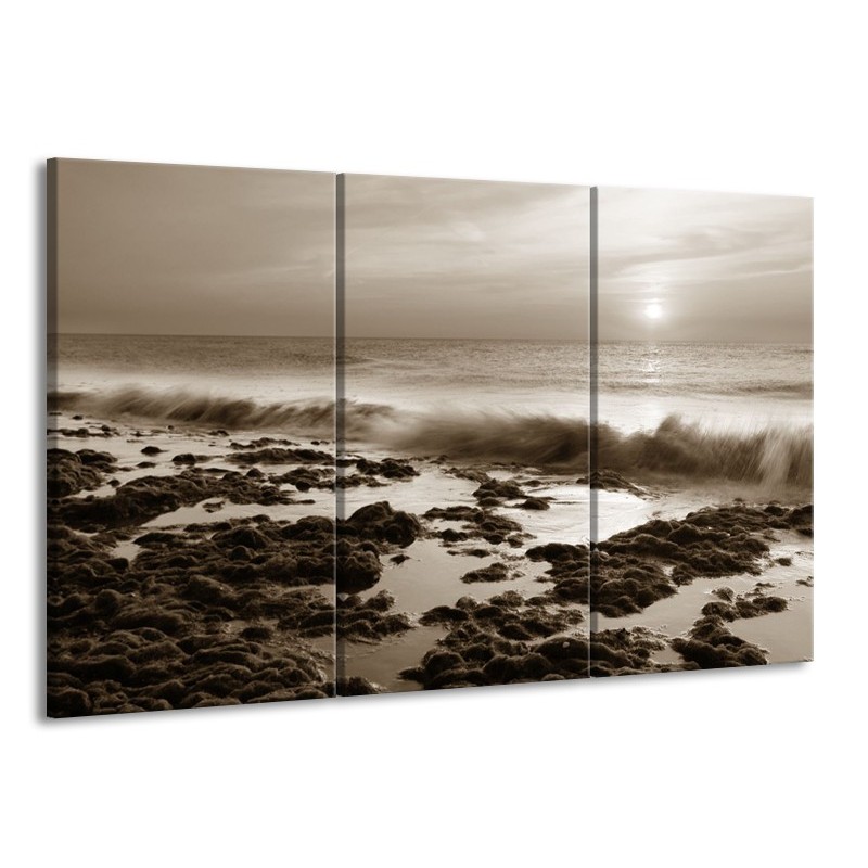 Canvas Schilderij Zee, Strand | Sepia | 165x100cm 3Luik