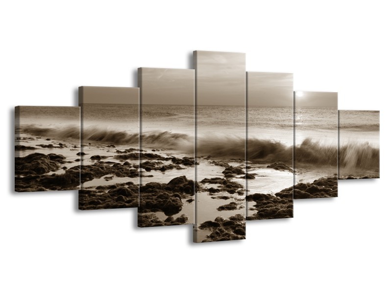 Canvas Schilderij Zee, Strand | Sepia | 210x100cm 7Luik
