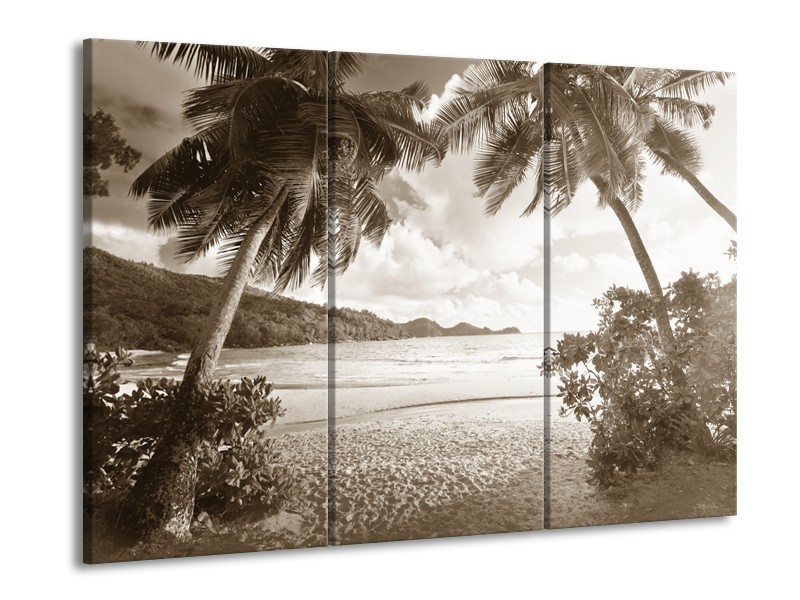 Canvas Schilderij Zee, Strand | Sepia | 60x90cm 3Luik