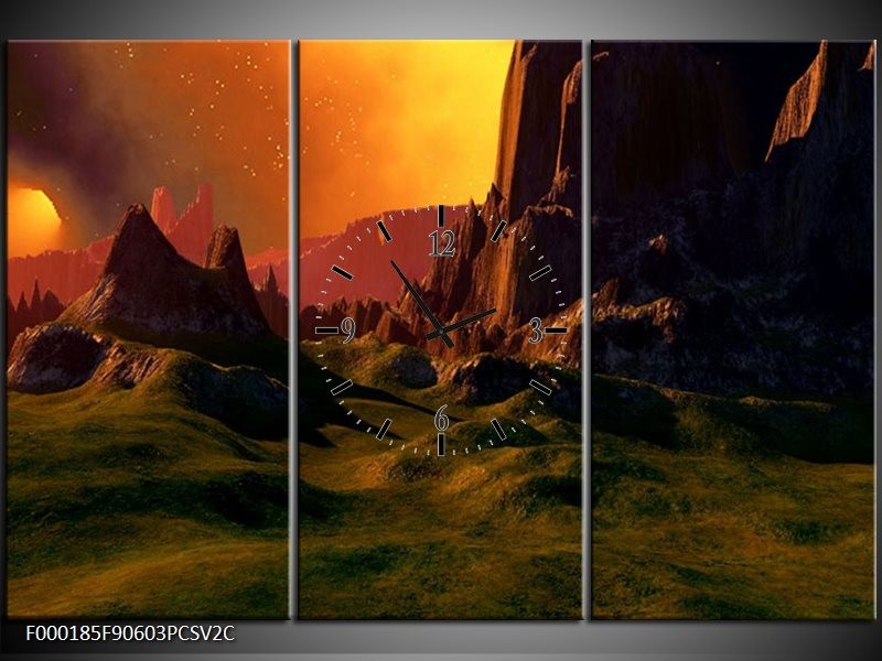 Klok schilderij Natuur | Groen, Bruin, Oranje | 90x60cm 3Luik