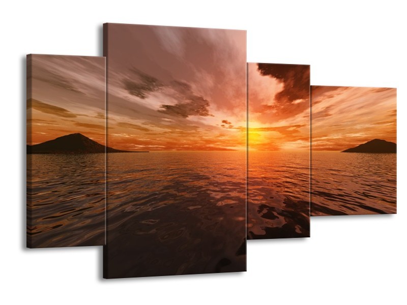 Canvas schilderij Zonsondergang | Grijs, Geel, Zwart | 120x75cm 4Luik