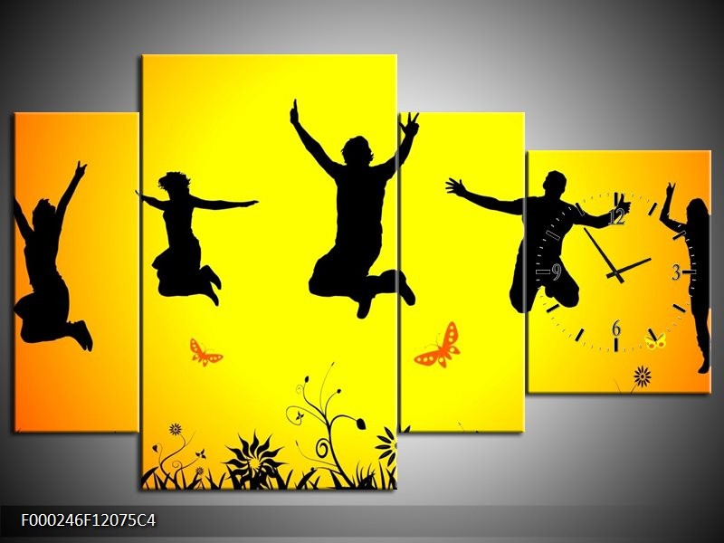 Klok schilderij Dansen | Geel, Zwart, Oranje | 120x75cm 4Luik