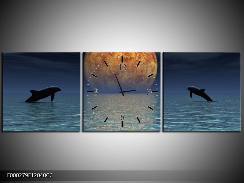 Klok schilderij Maan | Geel, Blauw, Zwart | 120x40cm 3Luik