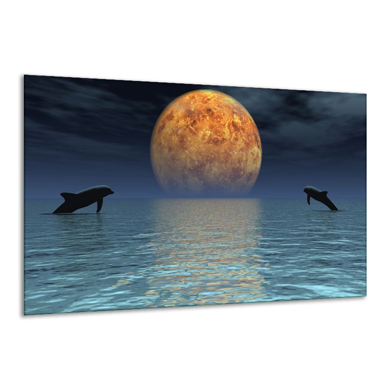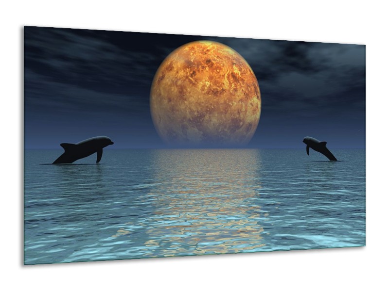 Canvas schilderij Maan | Geel, Blauw, Zwart | 120x70cm 1Luik