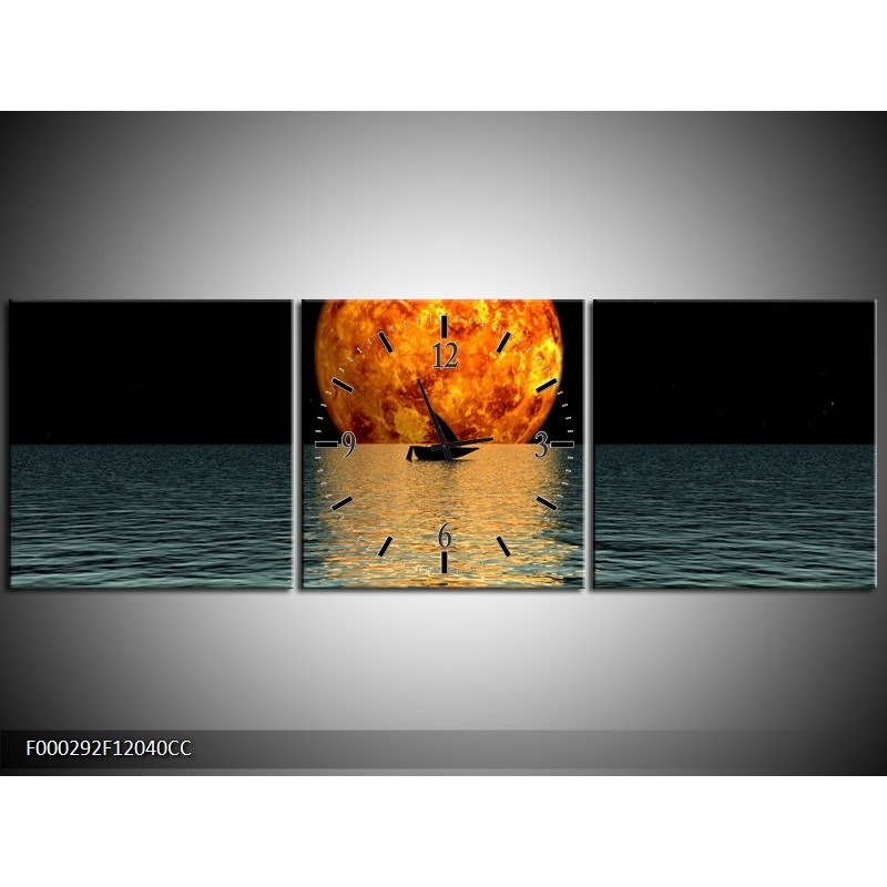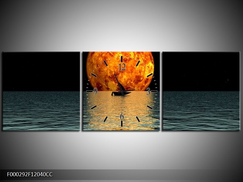 Klok schilderij Maan | Oranje, Blauw, Zwart | 120x40cm 3Luik