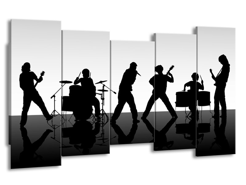 Canvas schilderij Muziek | Zwart, Grijs, Wit | 150x80cm 5Luik