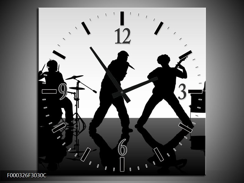 Klok schilderij Muziek | Zwart, Grijs, Wit | 30x30cm 1Luik