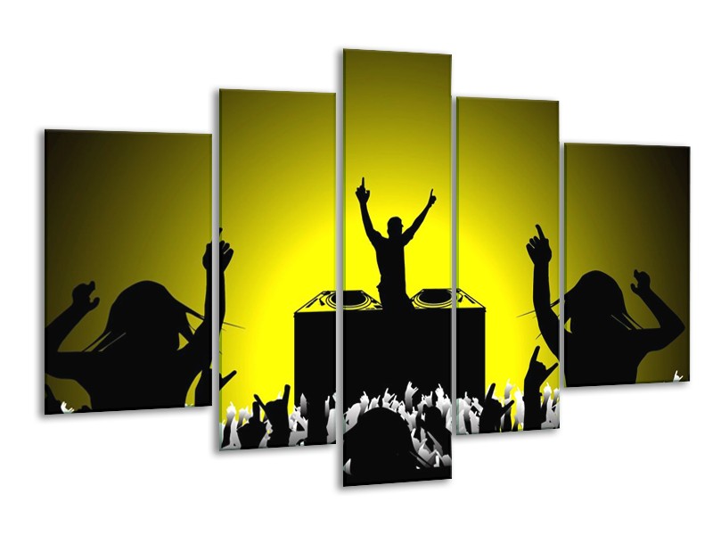 Canvas schilderij Muziek | Groen, Geel, Zwart | 170x100cm 5Luik