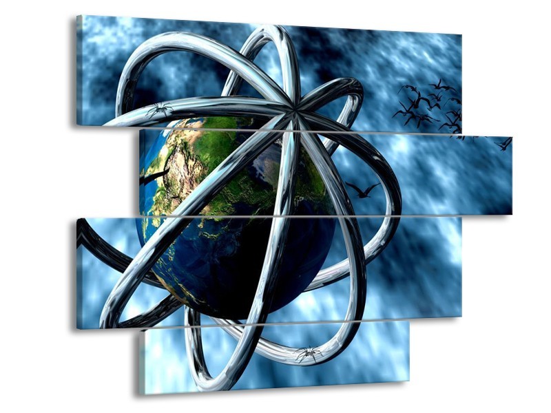 Glas schilderij Wereld | Blauw, Groen | 115x85cm 4Luik