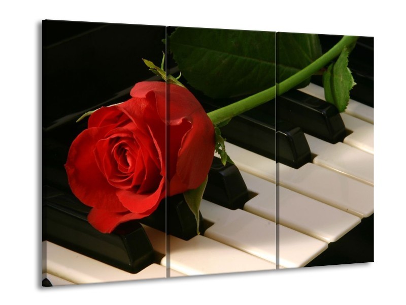 Canvas schilderij Roos | Rood, Rood, Zwart | 90x60cm 3Luik