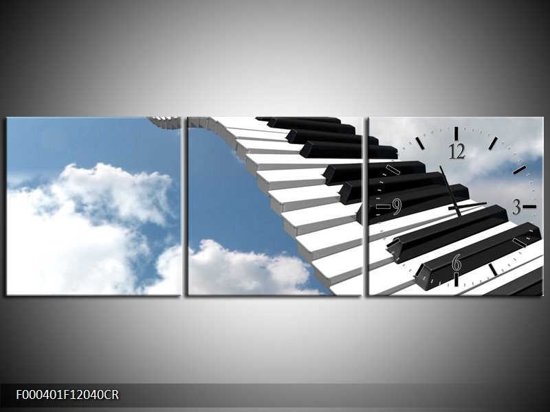 Klok schilderij Muziek | Blauw, Wit, Zwart | 120x40cm 3Luik