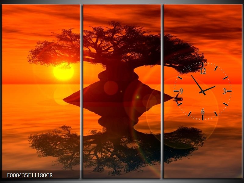 Klok schilderij Spiegeling | Oranje, Geel, Bruin | 111x80cm 3Luik