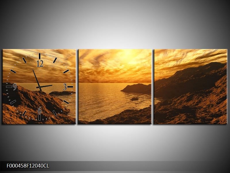 Klok schilderij Natuur | Bruin, Geel, Oranje | 120x40cm 3Luik