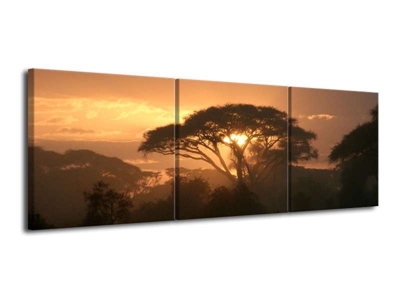 Canvas schilderij Boom | Bruin, Geel, Zwart | 120x40cm 3Luik