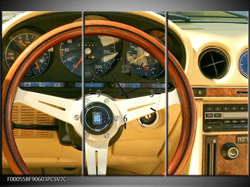 Klok schilderij Auto | Geel, Bruin, Zwart | 90x60cm 3Luik