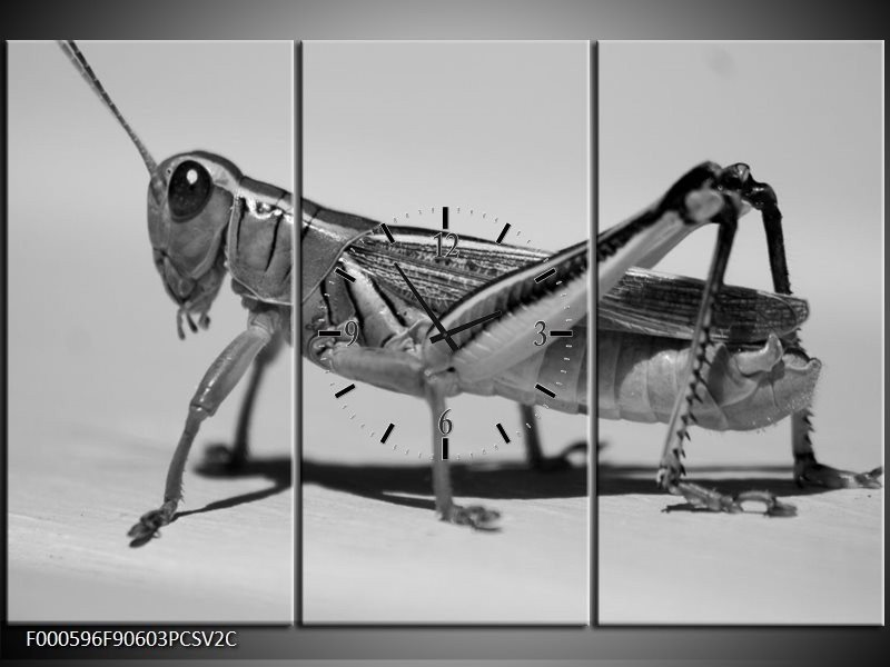 Klok schilderij Sprinkhaan | Grijs, Zilver, Wit | 90x60cm 3Luik