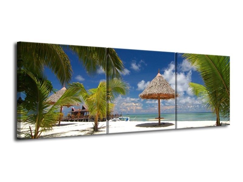Canvas schilderij Strand | Groen, Blauw, Wit | 120x40cm 3Luik