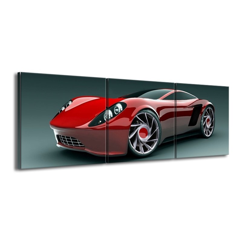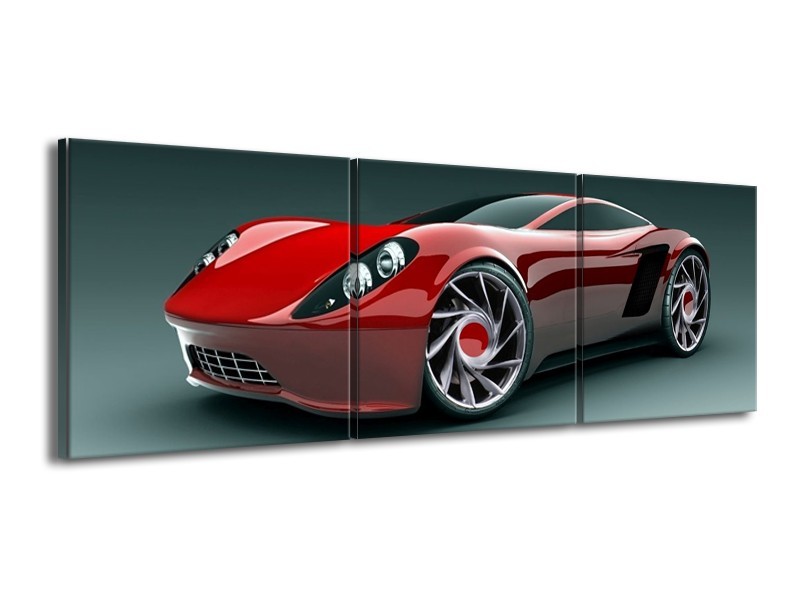 Canvas schilderij Auto | Rood, Zwart, Wit | 150x50cm 3Luik