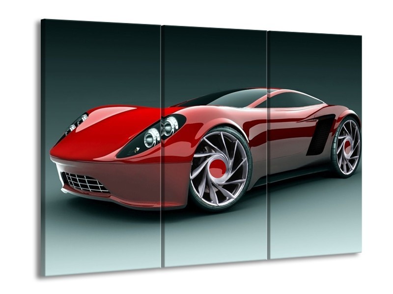 Canvas schilderij Auto | Rood, Zwart, Wit | 90x60cm 3Luik