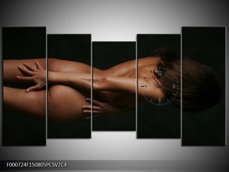 Klok schilderij Vrouw | Bruin, Zwart | 150x80cm 5Luik