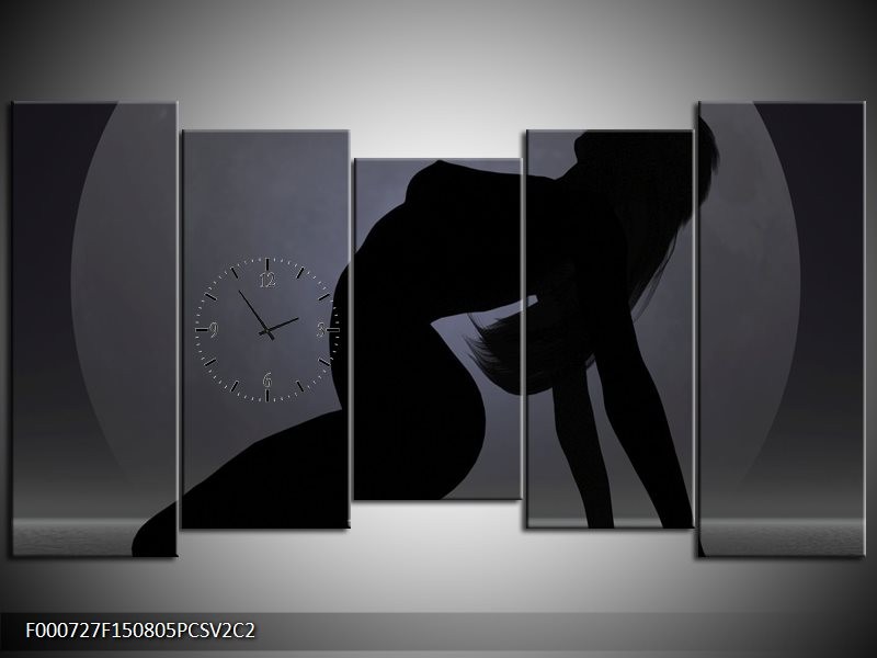 Klok schilderij Vrouw | Zwart, Grijs, Wit | 150x80cm 5Luik