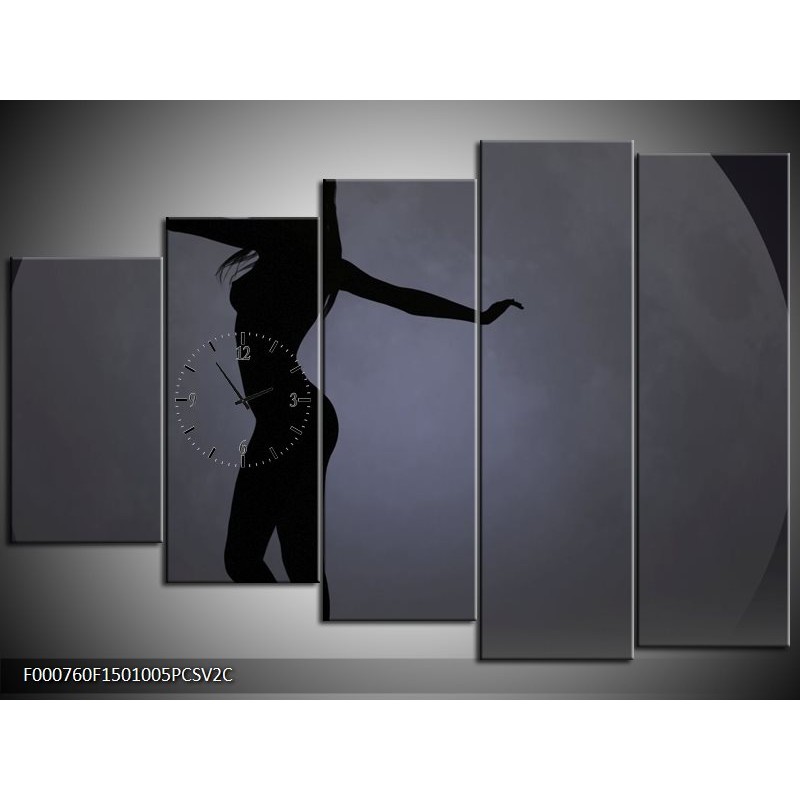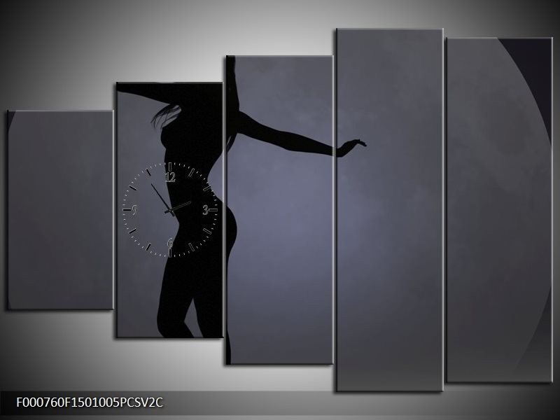 Klok schilderij Vrouw | Zwart, Grijs, Wit | 150x100cm 5Luik
