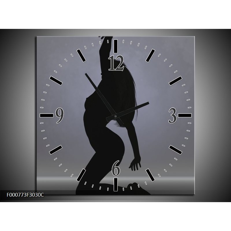 Klok schilderij Vrouw | Zwart, Grijs, Wit | 30x30cm 1Luik