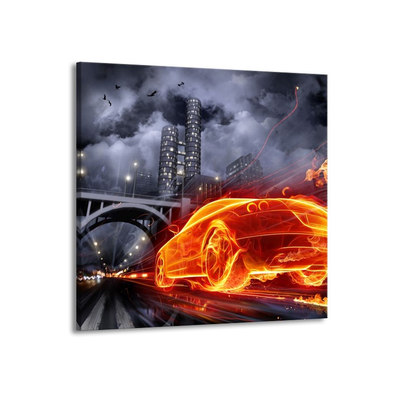 Canvas schilderij Auto | Rood, Oranje, Zwart | 70x70cm 1Luik