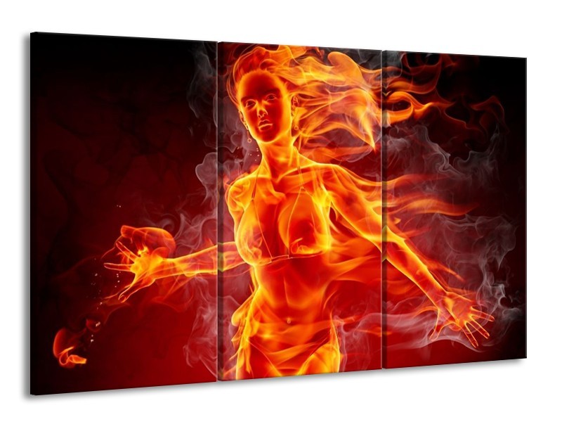 Canvas schilderij Vrouw | Rood, Oranje, Zwart | 165x100cm 3Luik