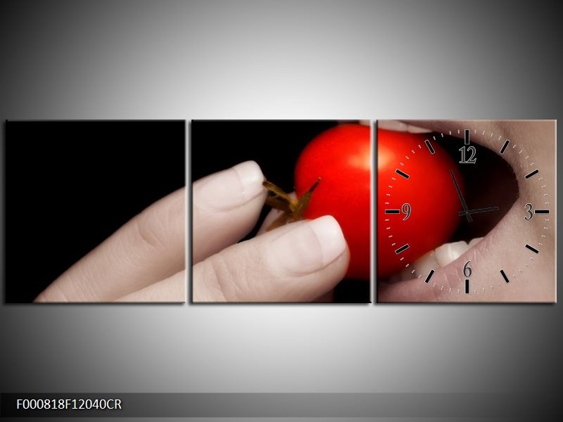 Klok schilderij Tomaat | Rood, Wit, Zwart | 120x40cm 3Luik