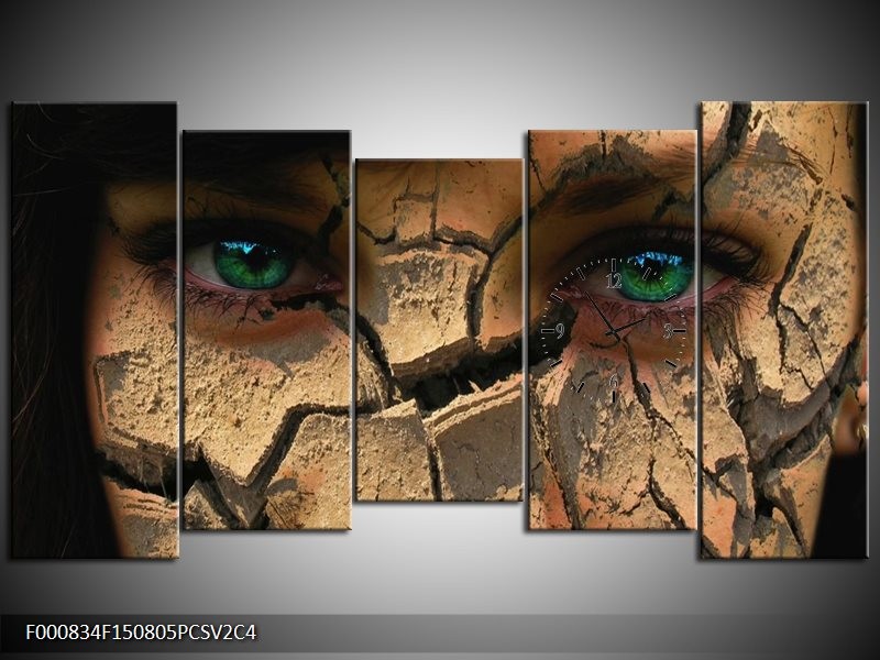 Klok schilderij Gezicht | Bruin, Groen, Zwart | 150x80cm 5Luik
