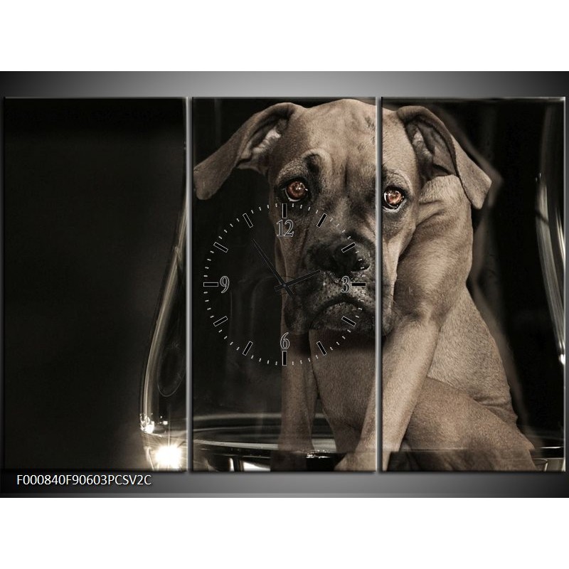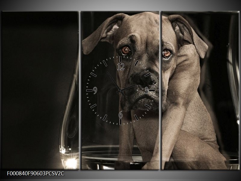 Klok schilderij Hond | Grijs, Zwart, Wit | 90x60cm 3Luik
