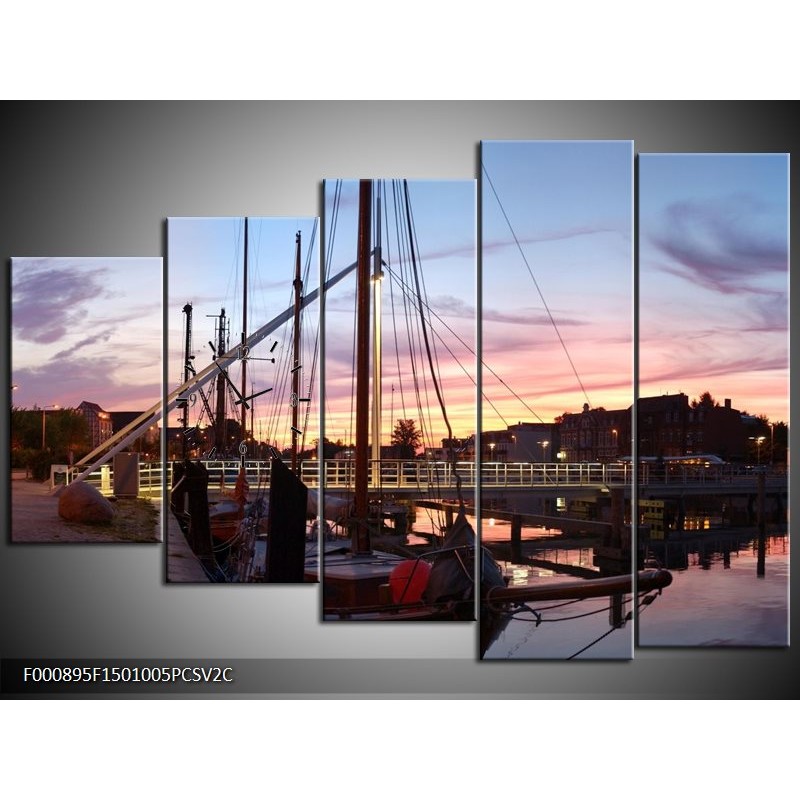 Klok schilderij Boot | Paars, Wit, Blauw | 150x100cm 5Luik