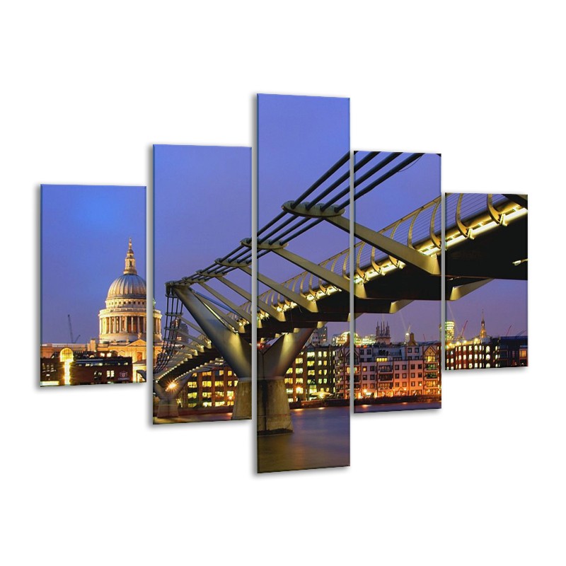 Glas schilderij Brug | Blauw, Geel, Goud | 100x70cm 5Luik