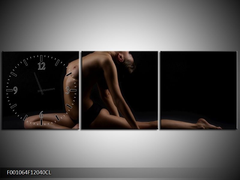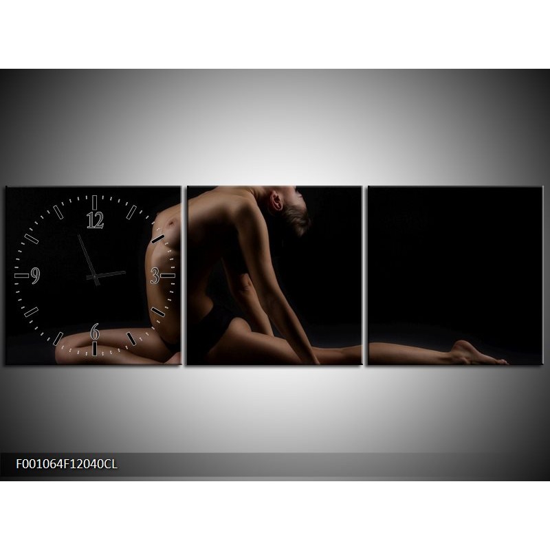 Klok schilderij Vrouw | Bruin, Zwart | 120x40cm 3Luik